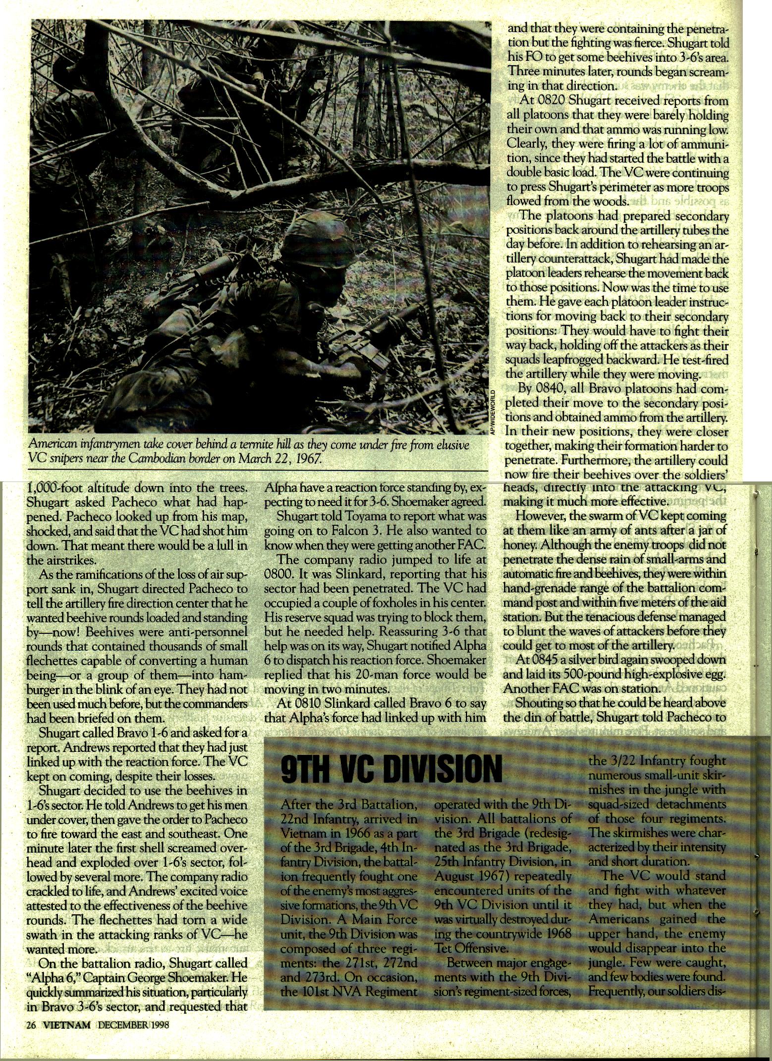C/2/22 took heavy causalities during the Cease Fire Period of Tet of 1967. As a result I asked to be transferred to the 22nd, arriving in February, 1967.
