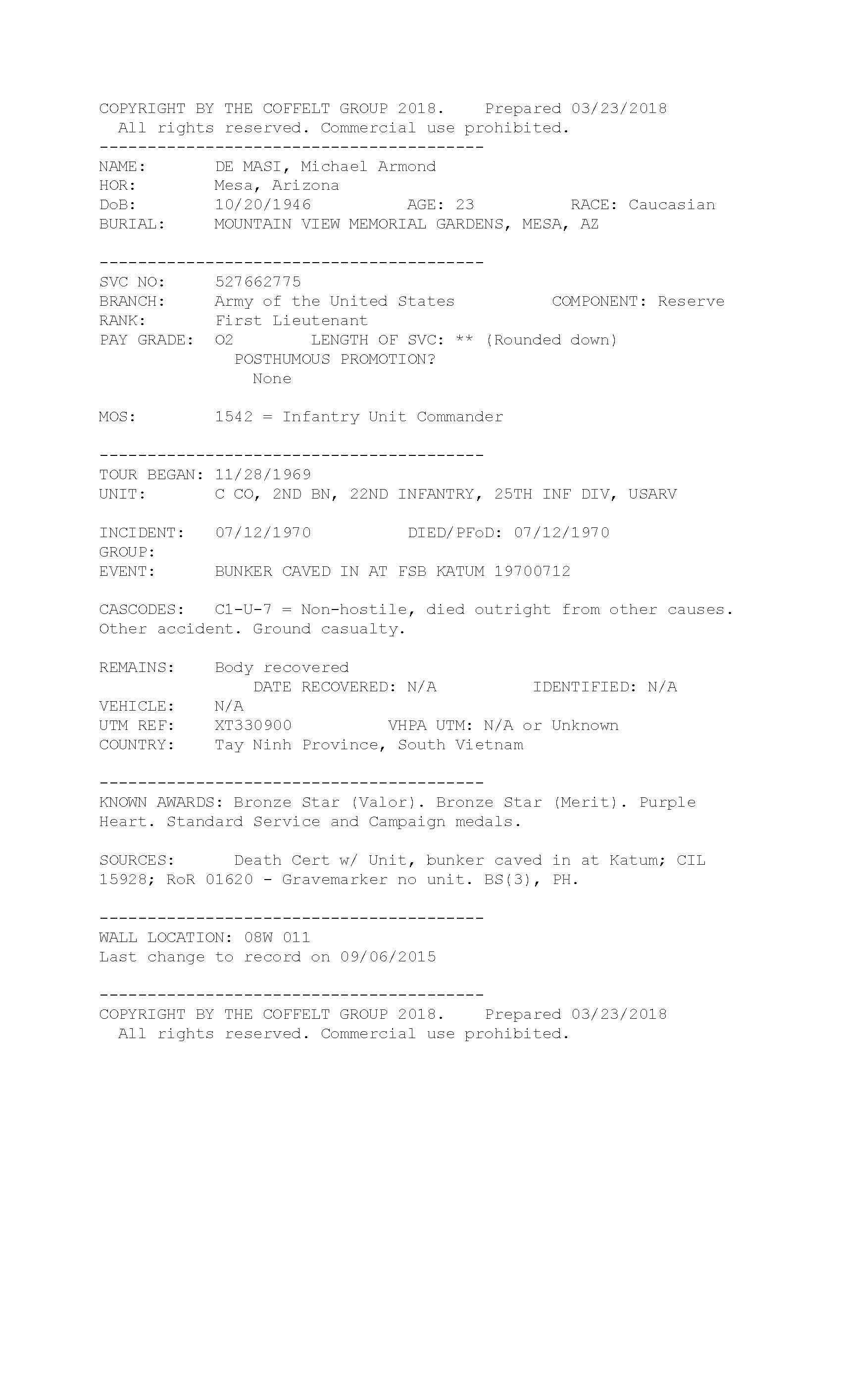 KIA: 07/12/1970