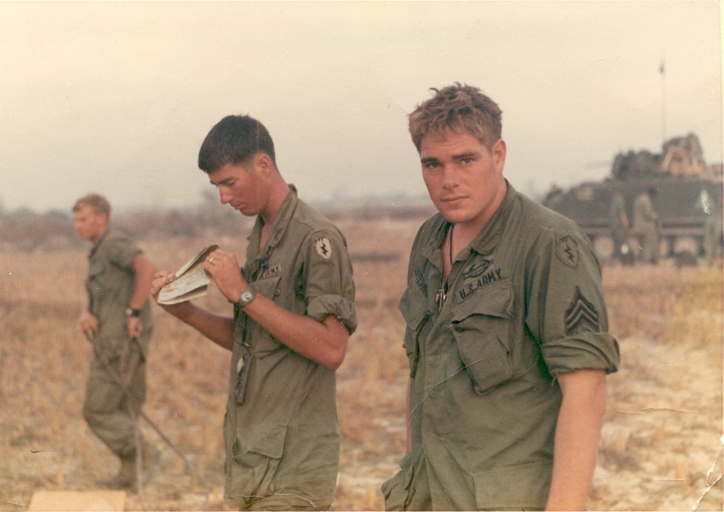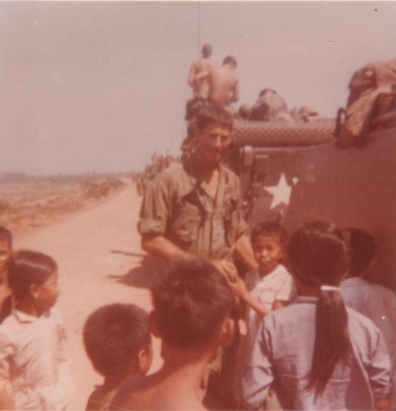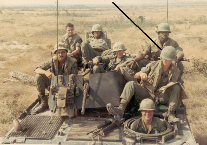 Lt DeMasi (behind driver) on Charlie Co track in Filhol 8 Mar 70. Squad members shown are