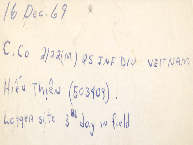 Charlie Co Platoon Leader Lt. DeMasi with unknown Sergeant in Boi Loi Woods 16 Dec 1969.