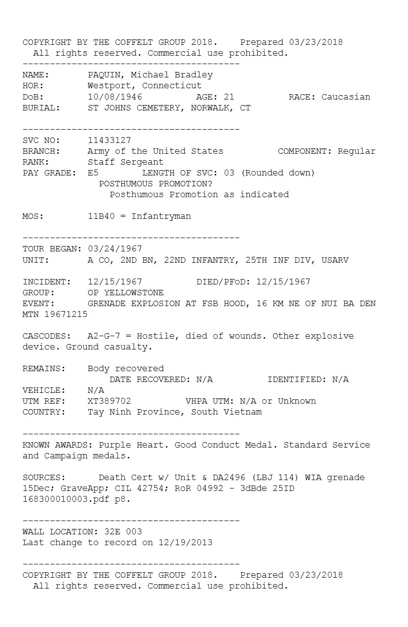 KIA: 12/15/1967
