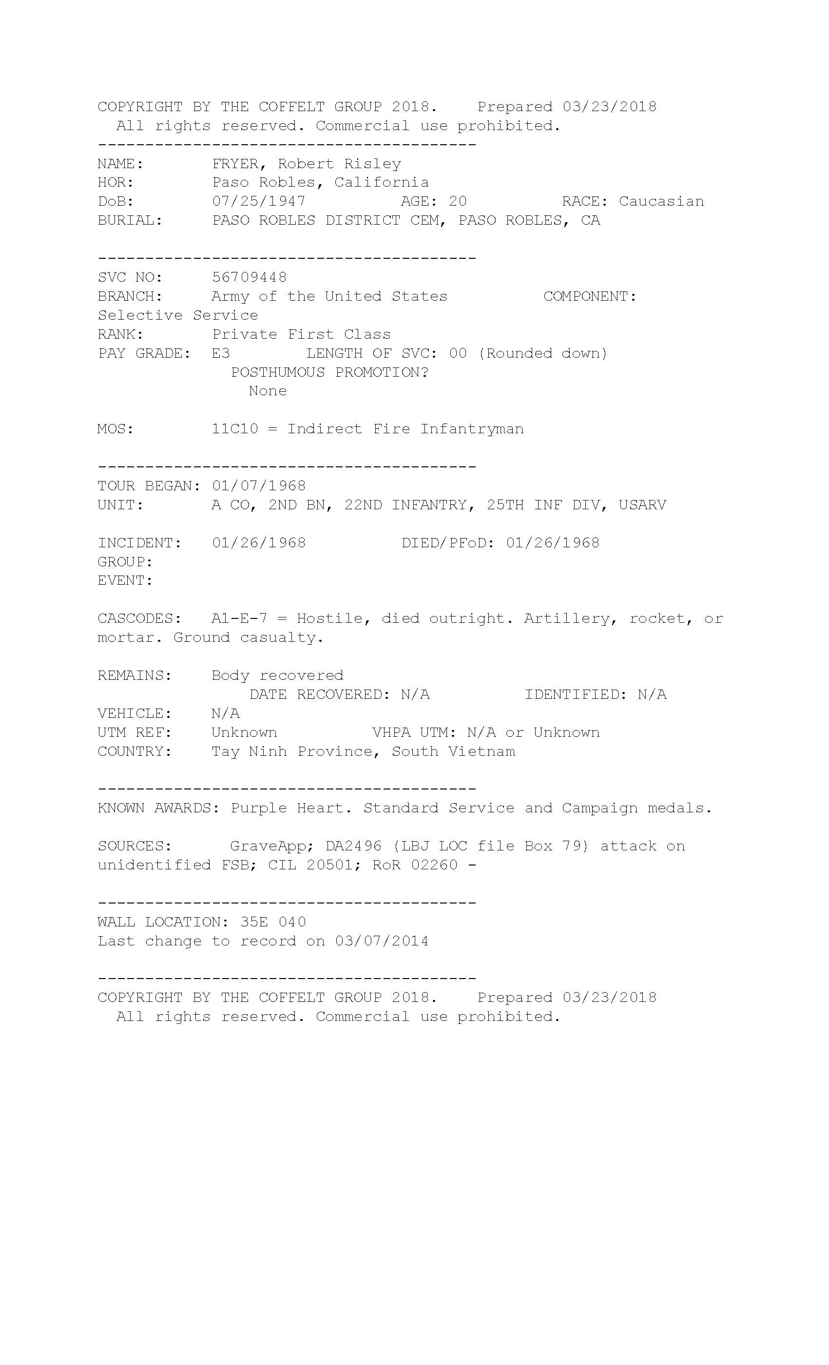 KIA: January 26, 1968